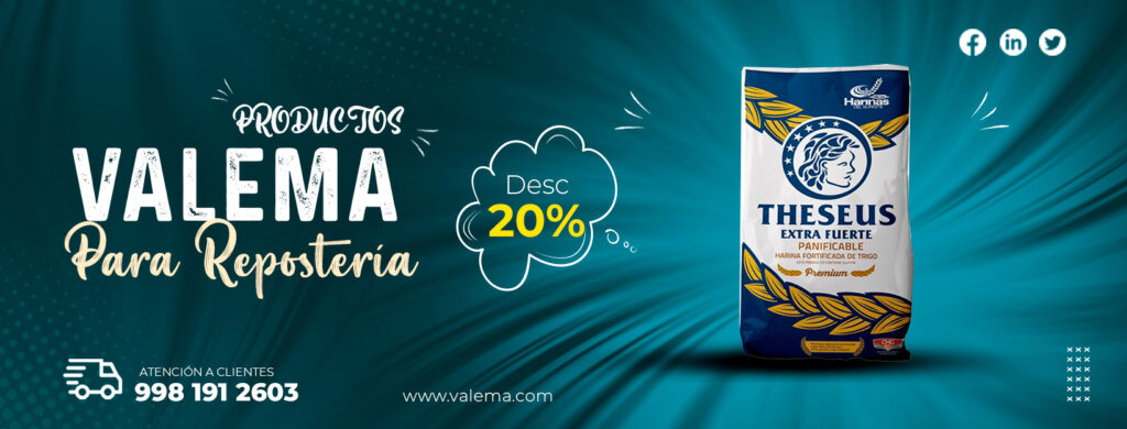 HARINAS PANIFICABLESDISTRIBUIDOR ACREDITADOVER MÁS20% offHariana fotificada de trigo EXTRA FUERTE PREMIUMRELLENO PASTELERODISTRIBUIDOR ACREDITADOVER MÁSComplemento para cobertura y relleno para pastelería totalmente pasterurizado sabor vainillaMARGARITADISTRIBUIDOR OFICIALVER MÁS15% DESC.Complemeto especial para masas hojaldradas